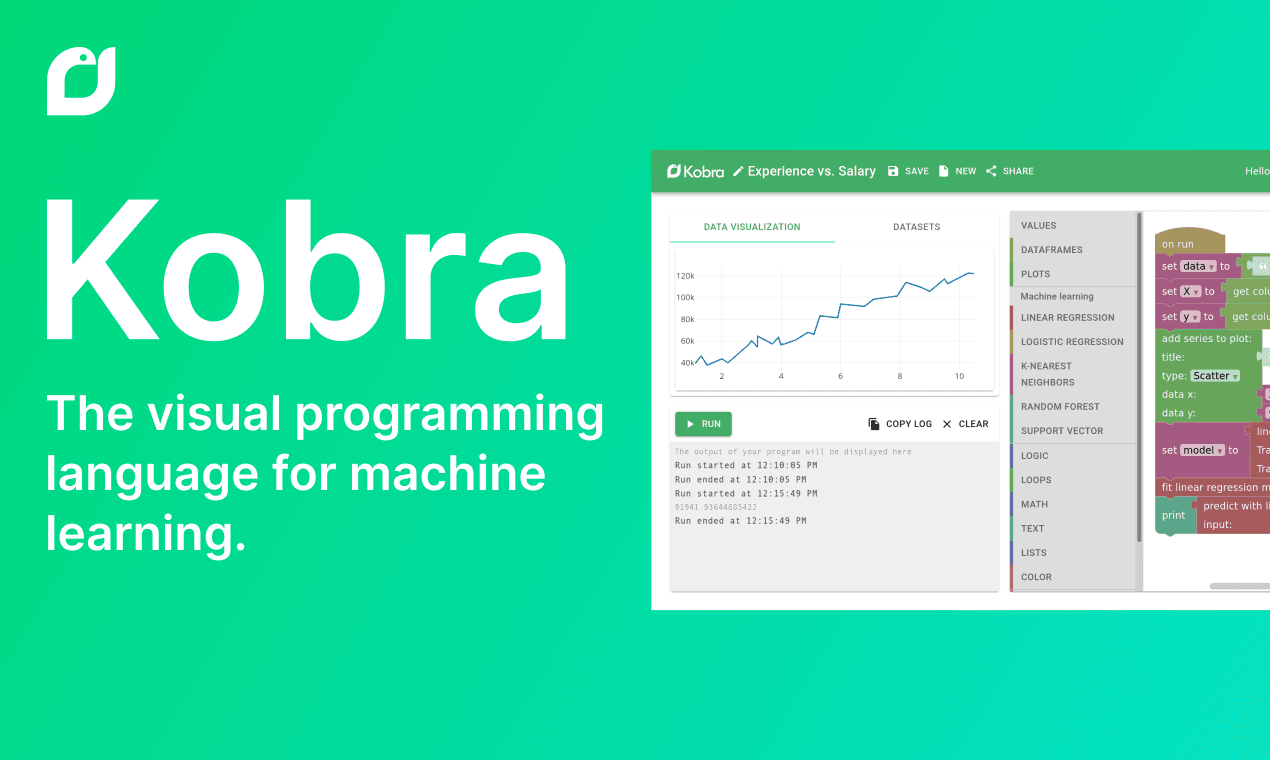 Команда старшеклассников из Replit запустила бета-версию Kobra — визуального языка программирования для машинного обучения. Идея простая: ML сегодня кажется магией для выпускников аспирантуры, но на деле его можно объяснить и тем, кто не пишет код.