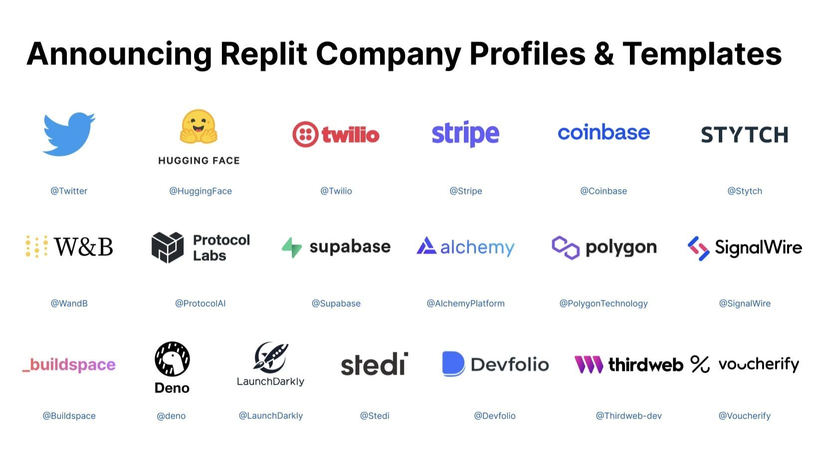 Replit запустил партнёрства с 19 компаниями и выложил более 35 шаблонов для сборки проектов. Цель — помочь комьюнити строить приложения следующего поколения прямо в браузере.